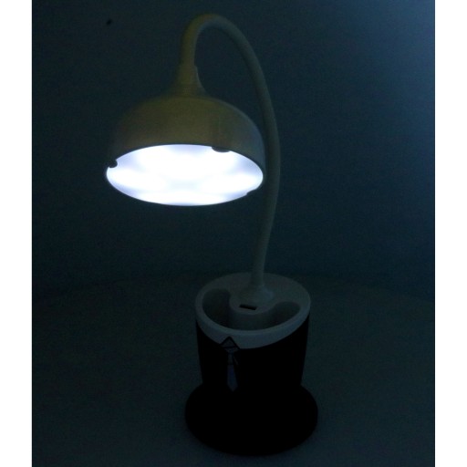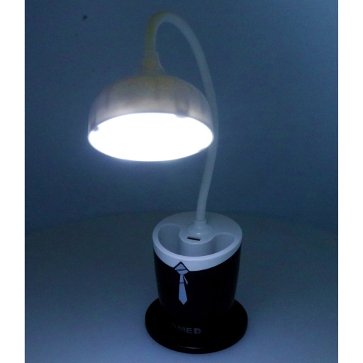 Настільна лампа не тільки освітлює робочий простір, але й дозволяє заряджати смартфон і зберігати ручки та олівці в одному місці.