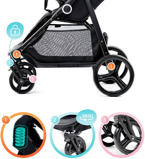 - Стійкість коляски завдяки відповідній конструкції:міцна рама та відповідна колісна база.