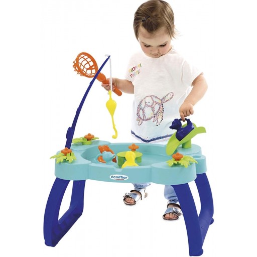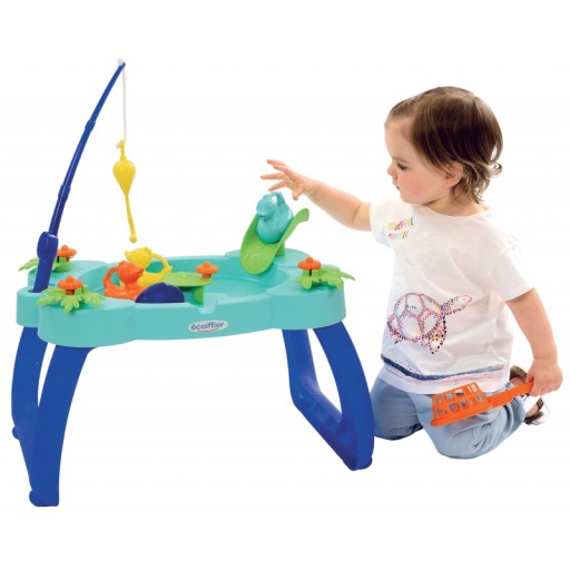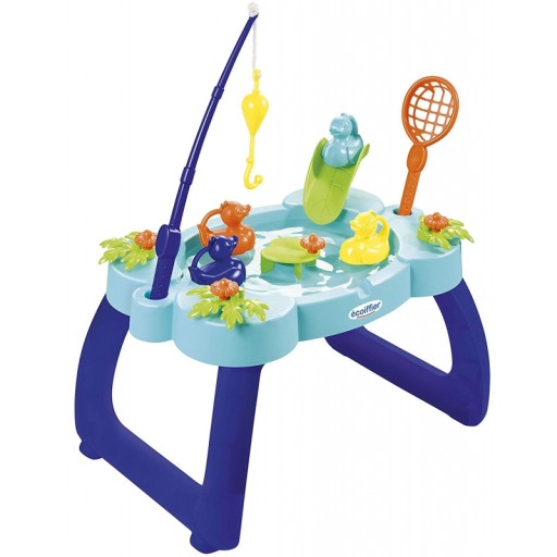 Водний столик для лову качок від бренду Ecoiffier - ідеальний вибір для теплих сонячних днів. Стіл забезпечує багато годин розваг на свіжому повітрі. Малюкові буде дуже весело ловити качок на вудку і сачок. У центральній частині ми знайдемо млин у вигляді латаття, який буде приводити воду (і качок) в рух! Столик має гірку, якою можуть користуватись каченята. Після гри ви можете легко позбутися води завдяки зливу, розміщеному на столі. Стіл має безпечні закруглені краї.
