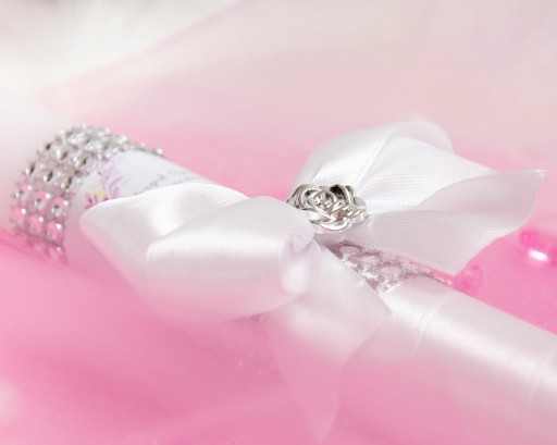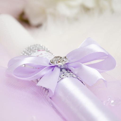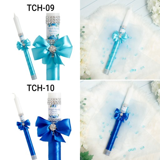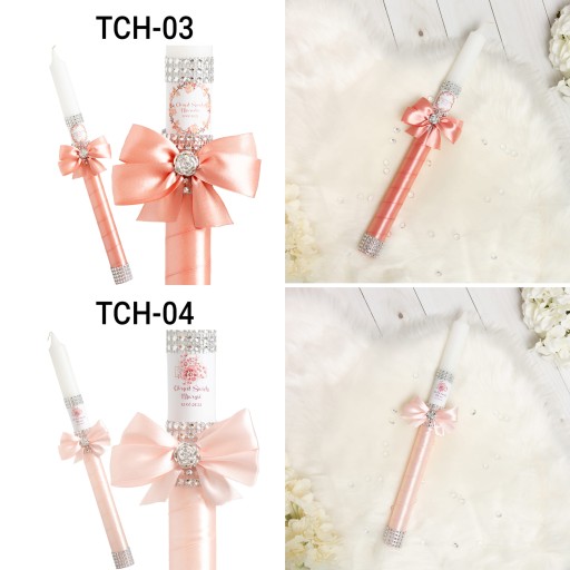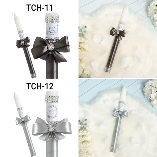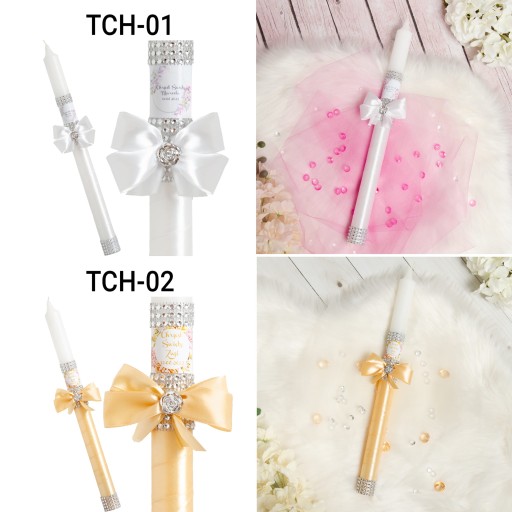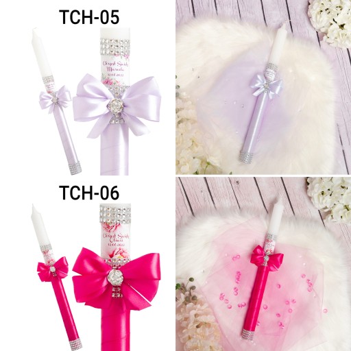 Всі свічки цієї колекції виконані в стилі гламур з атласними стрічками та прикрашені цирконами.