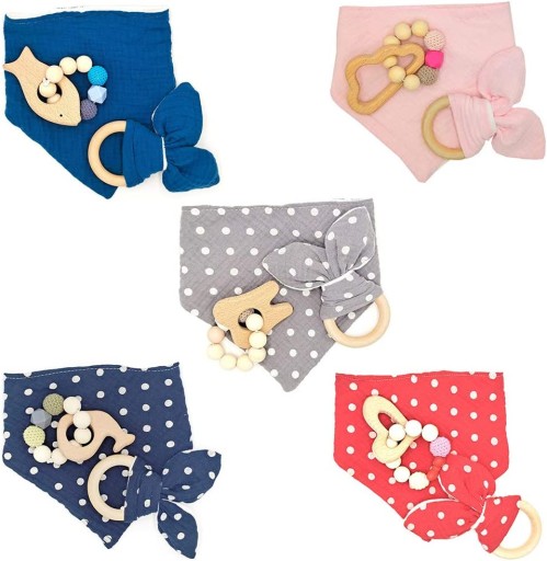 Кільце для прорізування зубів виготовлено з дерев’яного матеріалу, на якому можна друкувати, а рушник із страхувальної мотузки – з бавовняного матеріалу, м’якого, дихаючого та зручного. Кільце для прорізування зубів призначене для заспокоєння продукту для прорізування зубів дитини, який не є токсичним і нешкідливим для здоров'я дитини. Бавовняний рушник зберігає дитячий одяг сухим і комфортним. Він легкий, практичний і зручний для транспортування. Дитяче кільце для прикусів і ворсинок і ремінець для дитини. Інші аксесуари, показані на малюнку, не включені