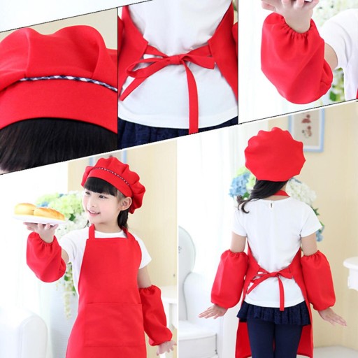 Фартух з рукавами і шапочка відмінно підійдуть для захисту тіла і одягу дитини під час кухонних переворотів.