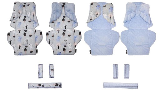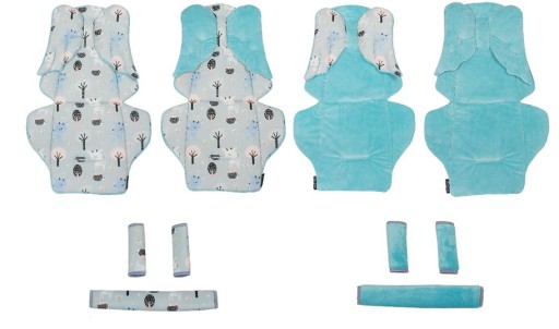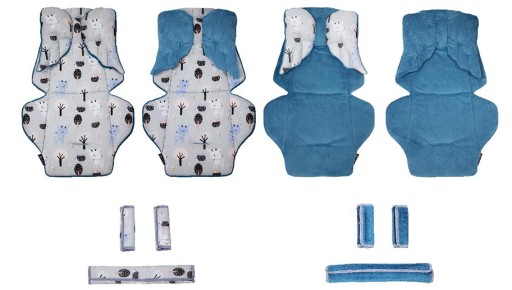 Двосторонній вкладиш коляски з подушкою "КРИЛА", разом з протекторами ременів і рейлінгами виготовлені з ПОЛІЕСТУ, ECOSKRY в поєднанні з приємним на дотик ОКСАМИТОМ. Всередині вставка наповнена пружинним дихаючим поролоном товщиною 10 мм і ворсистою антиалергічною силіконовою тканиною.