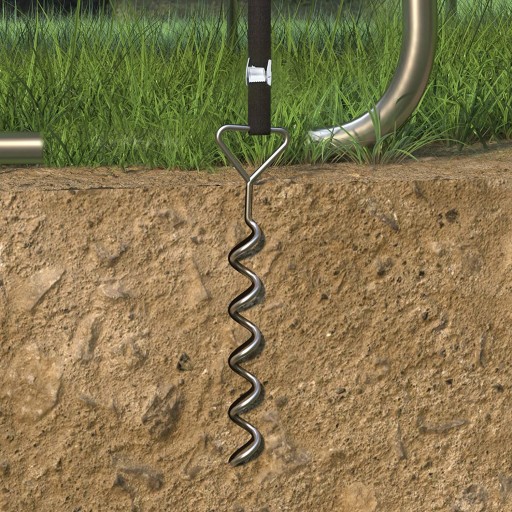 Дякуюспіральна формаякоря можна легкопалка в землюбез необхідності забивати їх молотком або копати ями в землі. Крім того, з доданими ремінцями батут може бутиміцно прикріплені до наземних анкерів, що забезпечує більшестабільність і безпека. Завдяки цьому батут буде залишатися на місці навіть у вітряні дні.