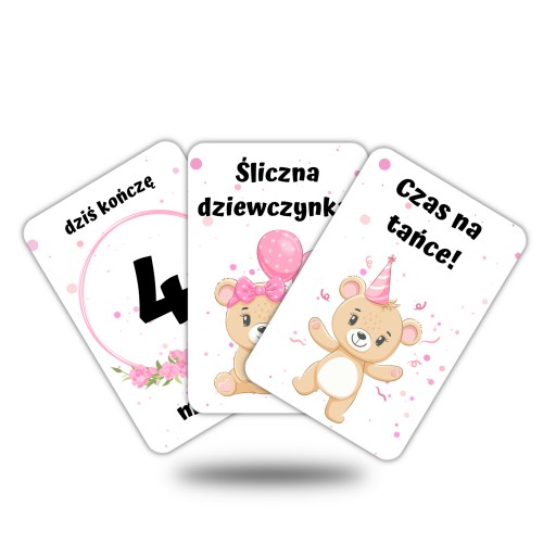 Набір Teddy Bear Pink Set - листівки для першого року життя дитини містить наступні картки: