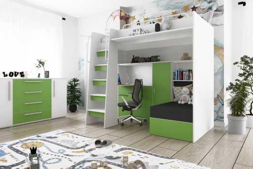 Сучасна антресоль JSM7 має всі важливі особливості, враховані при проектуванні дитячої кімнати, т.