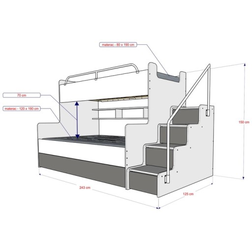 Двоярусне ліжко JSM 3 - наша наступна модель ліжка, призначена для дитячої або підліткової спальні. Меблі включають в себе всі важливі характеристики, враховані при оформленні дитячої кімнати, тобто.