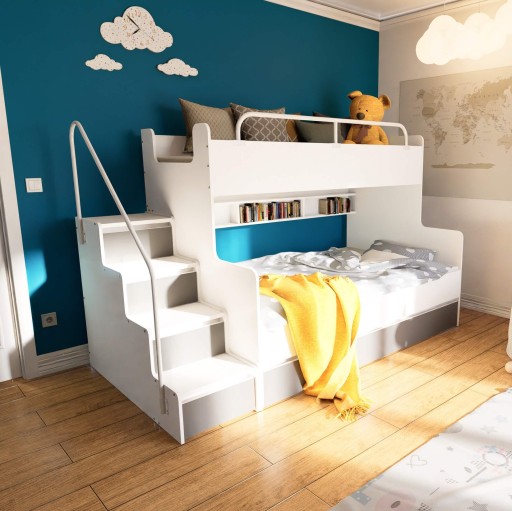 Комплект JSM 3 - це не тільки ліжко, на якому можуть розміститися до 3 осіб. Це також місце для зберігання постільної білизни та ящиків у сходинках сходів, куди помістяться багато цінних скарбів вашої дитини.