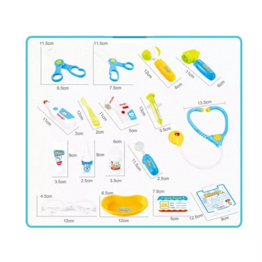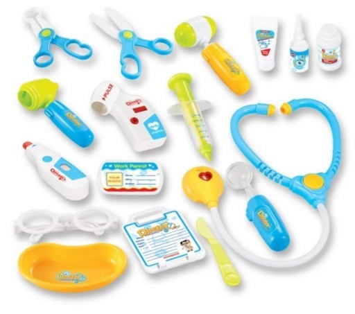 - Набір «Доктор» - одна з улюблених іграшок дітей. Завдяки цій іграшці ваша дитина навчиться дбати про здоров'я своїх близьких. Це чудова розвага, а також форма навчання. Набір дуже барвистий і має багато аксесуарів. Виріб безпечний, не має гострих країв, елементи адаптовані під ручки дитини, що дозволяє їх легко хапати і тримати. Набір складається з 17 елементів, які розміщуються в зручному та легкому візку на 4 колесах. Докторські аксесуари та 2-рівневий візок з імітацією екрану ЕКГ та ручкою дозволяють різноманітну та багаторазову гру. Завдяки тому, що коляска оснащена колесами, ви легко можете взяти іграшку в іншу кімнату, сад або навіть на прогулянку.В набір входять такі елементи як: стетоскоп, отоскоп, пульсометр, термометр, стоматологічне дзеркало, неврологічний бугор, шприц, ножиці, щипці, очні краплі, мило для рук в тюбику, миска, скальпель, окуляри без лінз, флакон, бейдж-застібка з місцем для написання імені та фото, а також як пластиковий блокнот, який можна повісити.