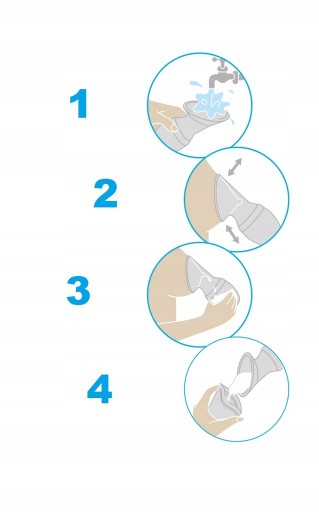 - Обережно стисніть нижню частину молоковідсмоктувача та піднесіть відкриту частину до грудей. Завдяки вакууму, що утворюється, пристрій буде прилипати до тіла.