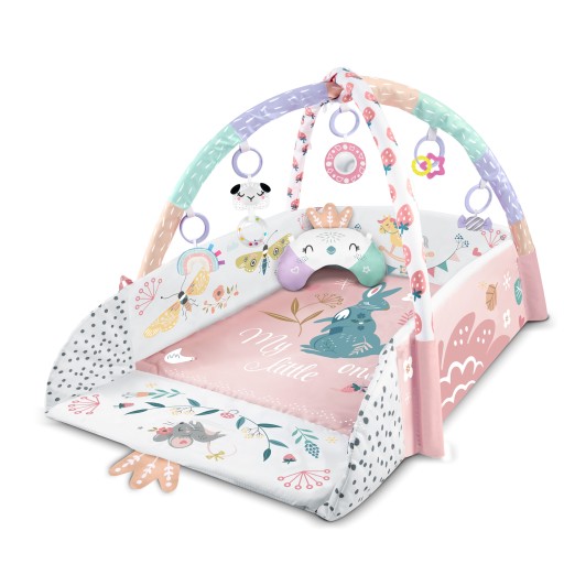 Пастелькольори,ергономічнорозроблені іграшки, якіпідтримувати розвиток дитиниа завдяки знімним штангам килимок довше залишатиметься з дитиною.