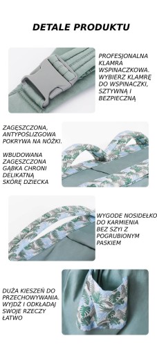 Переноска виготовлена з бавовни та поліестеру,дружній до шкіри дитина. Широка таліярозвантажує спину, завдяки чому дитина здається набагато легшою.Міцна пряжказабезпечитибезпекипід час користування носієм.