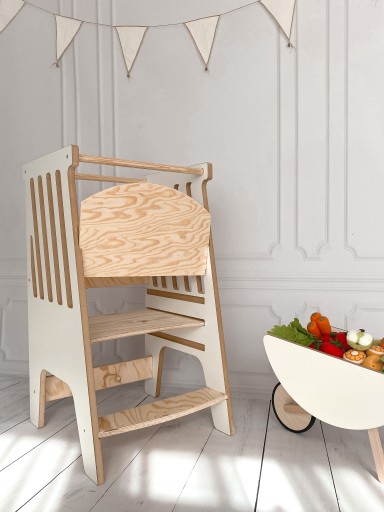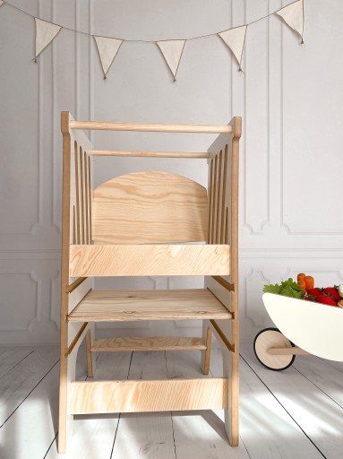 - Кухонний помічник дозволяє безпечно розвивати самостійність, креативність і креативність вашої дитини під час роботи на кухні разом з батьком. Це відповідає філософії Монтессорі, яку так цінують сьогодні.