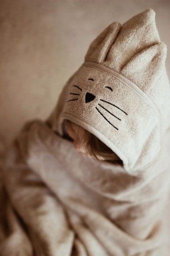 рушникмає милі вушка та вишивку на капюшоні з мотивом кошеняти. Функціональний крій і великий розмір підійдуть як для однорічної дитини, так і для дошкільника. Він ідеально підійде вдома під час щоденного купання, а також у басейні чи на пляжі.