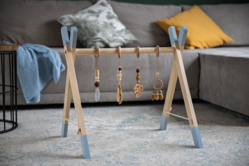 Розвиваючий стенд ми створили з урахуванням найменших дітей (0-6 місяців). Baby Gym стане ідеальною іграшкою в перші місяці життя вашого малюка. У період 12-36 місяців відмінно підійде як маленька вішалка для одягу в дитячу кімнату.