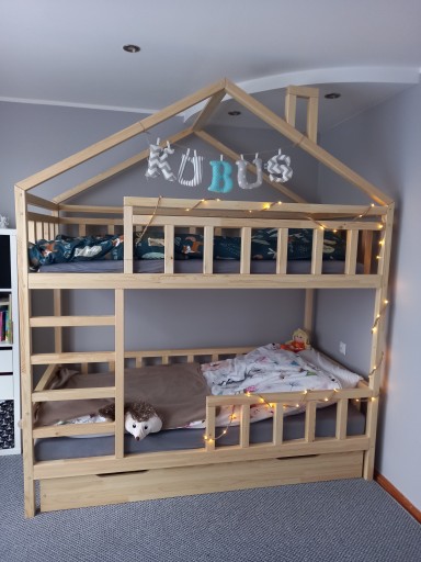 Це продукт, створений для потреб людей, для яких безпека, надійність, довговічність і практичність є найважливішими характеристиками, якими повинен володіти дитячий автомобіль. двоярусні ліжка - з натурального матеріалу - сосна. Він ідеально підходить для маленьких кімнат. Завдяки своїй структурі він дає дітям більше простору для ігор.