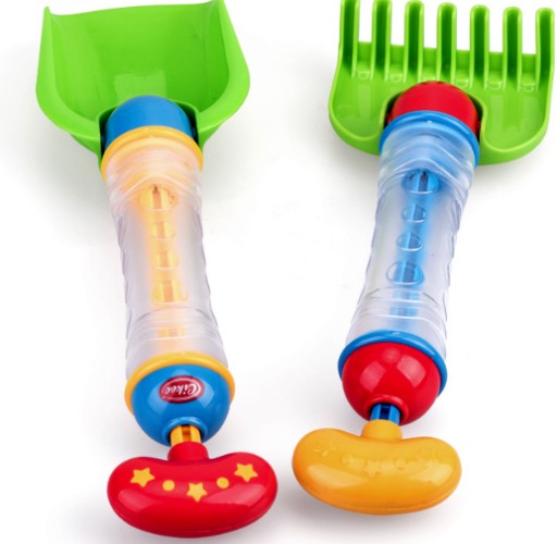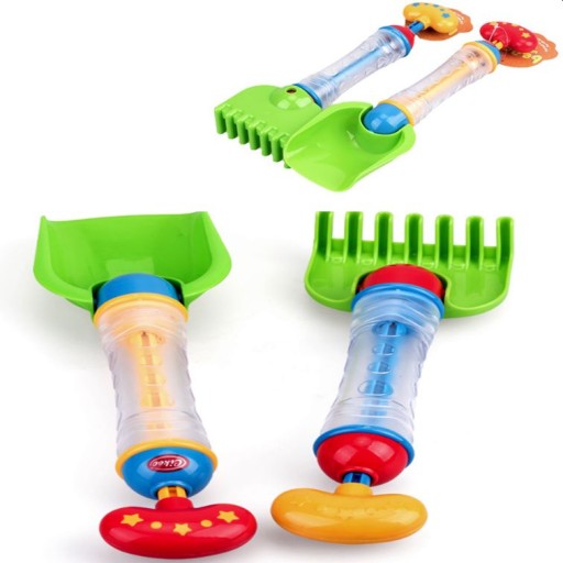 - лопата і граблі будуть використовуватися для гри в піску, а після наповнення ємності водою вони перетворюються на сику,