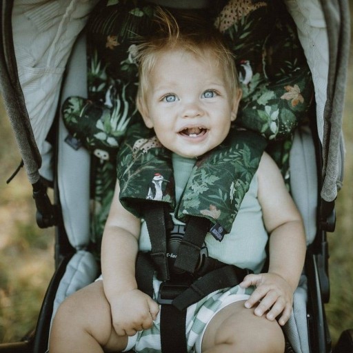 Оксамитові чохли на ремені можна комбінувати з різними виробами Makaszka, щоб створити унікальну, казково барвисту композицію дитячої коляски чи автокрісла.