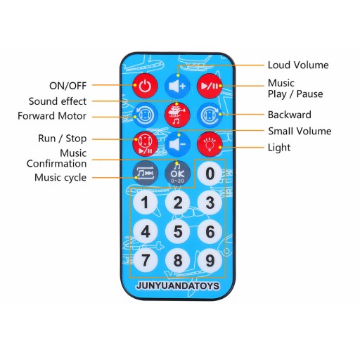 ãЛЕГКИЙ У КОРИСТУВАННІДитячий інфрачервоний пульт дистанційного керування (літієві металеві батареї входять у комплект) для перемотування вперед і назад, зміни музики, налаштування звуку тощо. Батьки не будуть дратуватися. Потрібні 3 батарейки типу АА. (Акумулятори не входять) в комплекті.
