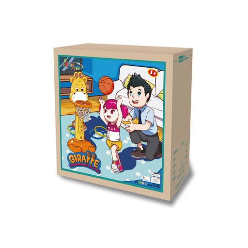 Спереду набору знаходиться баскетбольний кошик, ззаду - щит, в який дитина може закинути безпечний м'яч за допомогою присосок, прикріплених до набору.