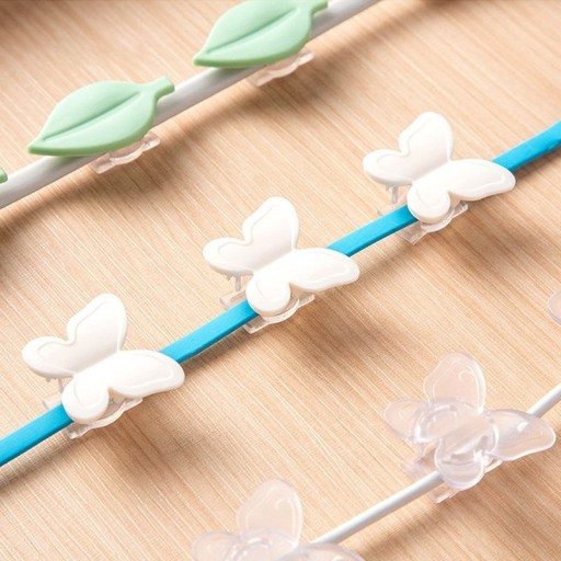 Декоративна ручка допомагає тримати дроти та кабелі в одному місці. Ідеально підходить для приклеювання до таких місць, як стіни, тумбочки, тумби під телевізор, столи тощо. Тримачі дроту та кабелю можна прикріпити практично до будь-якої поверхні. Виріб має оригінальний дизайн - він у формі метелика. Тримач має плоске поглиблення, яке підходить для більшості кабелів і проводів, доступних на ринку.