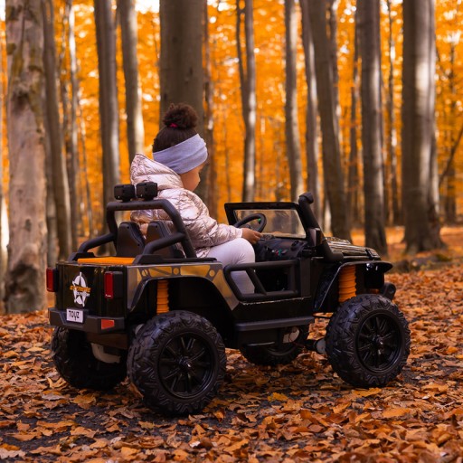 Лакований кузов даної моделі підвищує естетичну цінність, а вечірнє водіння урізноманітнюють передні світлодіодні ліхтарі та 2 фари, встановлені на перекладині. Висувні сходинки полегшують посадку маленьких дітей, а батьки можуть керувати ними за допомогою пульта дистанційного керування.