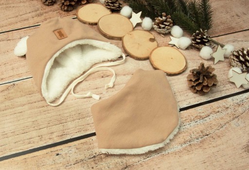 Практичний і необхідний зимовий комплект, утеплений пухнастим хутром - шапка і шарф кольору іриски.