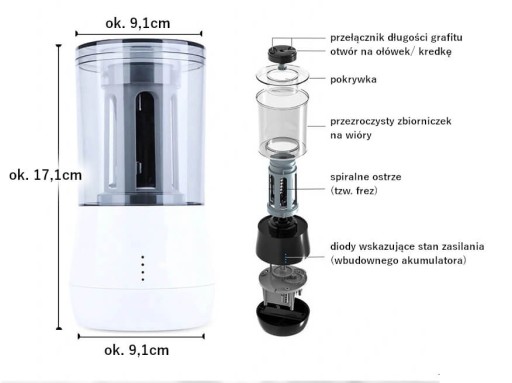 - Режим роботи: електрична заточка (вбудований літієвий акумулятор).
