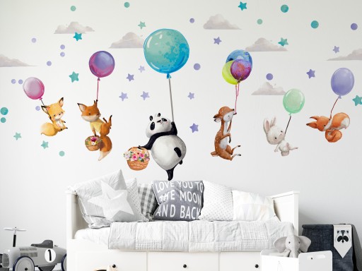 - Наклейки наклеєні як у візуалізації стіни займають250х110 см (висота панди з кулькою 92 см, оленя з 3 кульками 66 см!).