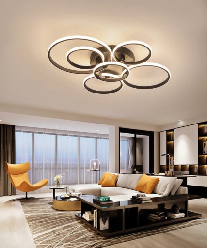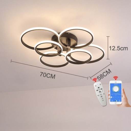 Стельовий світильник RINGS + пульт дистанційного керування у версії з шістьма кільцями з порошковою алюмінієвою структурою.