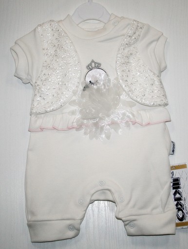 Повноцінний кремовий комбінезон з пришивною жилеткою з фатину з вишивкою.