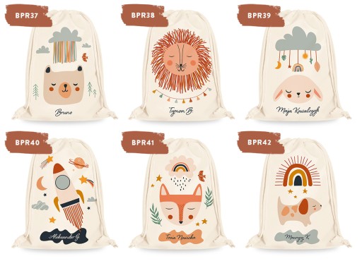 Іменна сумка з красивою, модною, барвистою графікою — ідеальне рішення для зберігання тапочок і дитячого одягу в яслах, дитячих садках чи школах.