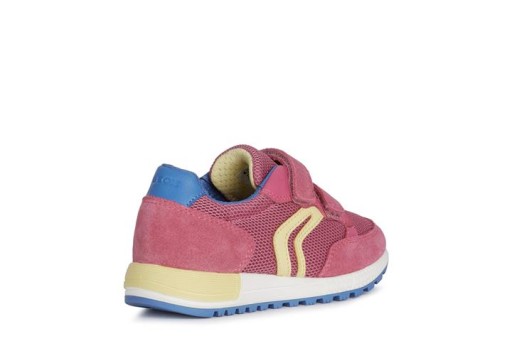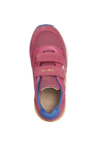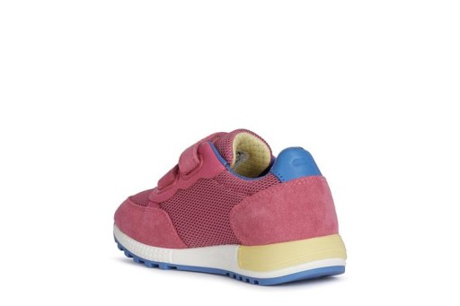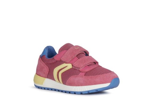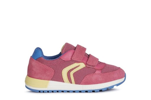 Дитячі кросівки на липучці для дівчинки Geox з весняно-літньої колекції код J15AQA-01422-C8002 колір фуксіяСклад: верх: 48% текстильна сітка нейлон 38% шкіра замша 14% синтетичний поліестер Підкладка: 87% текстиль поліестер, 13% синтетика поліестер устілка: 100% шкіра підошва: високоякісний матеріал