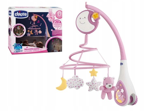 Перший мобільний пристрій, розроблений спеціально для встановлення на сидіннях Next2Me, він також підходить для більшості дерев’яних дитячих сидінь. Карусель з підвісними іграшками допоможе вашій дитині спокійно заснути. 20 хвилин класичної музики (Шопена, Шумана, Оффенбаха) і заспокійливого білого шуму - створеного для імітації звуку серцебиття, який є першим звуком, який дитина чує в утробі матері.