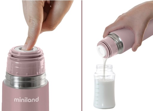 Зберігає температуру рідини більше 24 годин. Термос Miniland дуже міцний і ефективний завдяки подвійній сталевій стінці, вакуумній камері та подвійній системі кришки.