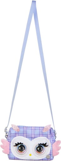 Ця чарівна сумочка фіолетового кольору в клітку. Карта великих райдужних очей, натхненна поп-артом, із довгими віями. Він також має короткі вуха та крильця. Коли ви натискаєте сіру кнопку в нижньому правому куті сумки, він видає різні звуки, відкриває та закриває очі. Він оснащений понад 30 звуками дій.