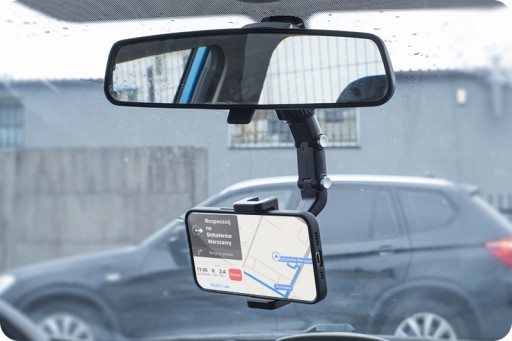 Зручний міцний тримач для автомобільного дзеркала заднього виду - безпечне рішення для розміщення телефону на видному місці, яке не заважає користуванню транспортним засобом. Виготовлений з високоякісних матеріалів і добре підігнаних елементів, він буде тримати своє положення і не розвалиться.