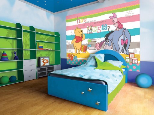 Смугасті флізелінові шпалери Дісней Вінні Пух.