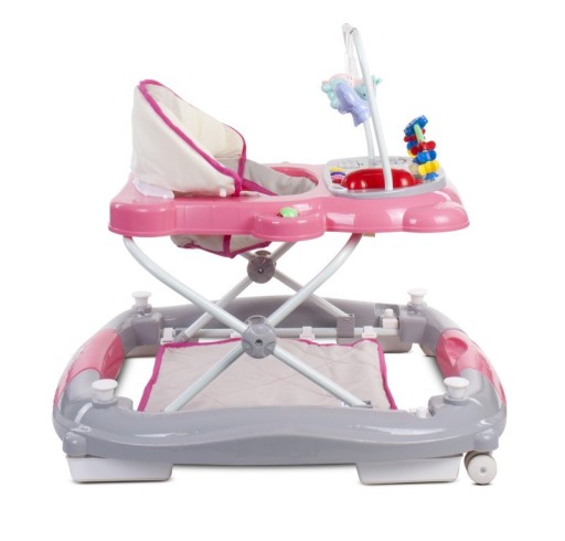 - Триступеневе регулювання висоти дозволяє підігнати ходунки під зріст дитини, механізм регулювання висоти з подвійним захистом