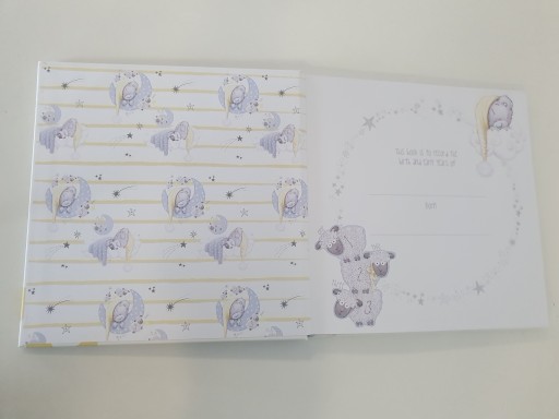 - Сторінки включають: Очікування дитини, Дитина народилася, Повернення додому, Оселення, Давання імені дитині, Наша чудова родина, Розвиток дитини, Віхи дитини, Час купання, Час сну, Прогулянки та розмови, Перше Різдво та Різдво, Перший день народження, Перша відпустка, Улюблені речі , друзі дитини, медична книжка, незабутні моменти та перший день у школі.