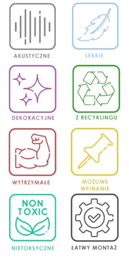 Завдяки своїм звукопоглинальним властивостям наші панелі покращать акустику Ваших приміщень. Вони ефективно зменшують відлуння, що забезпечує кращу якість відтворюваних звуків і чіткість мови.