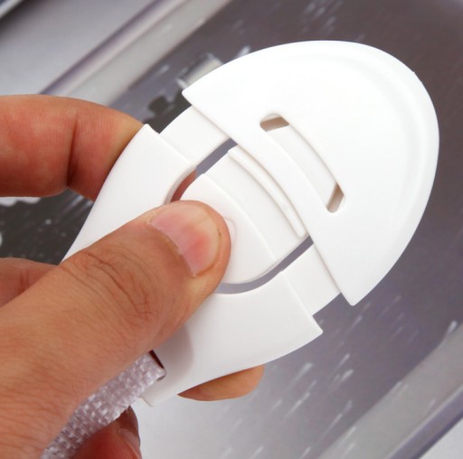 Замок потрібно приклеїти так, щоб одна його частина знаходилася на дверцятах, а інша на стінці шафи/шухляди.