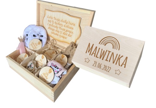 Народження дитини – унікальна подія в житті кожної людини. Варто відсвяткувати їх, створивши унікальну вигравірувану коробку з найважливішими спогадами. Скринька спогадів стане ідеальним інструментом для зберігання близьких серцю предметів і фотографій, перегляд яких через багато років викликає почуття та викликає сльози.