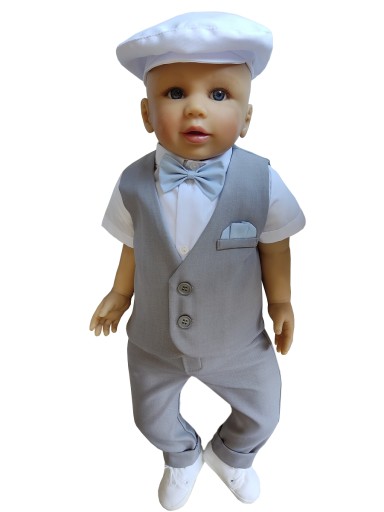 - ЖИЛЕТ СІРИЙ - з костюмної тканини, застібається на два ґудзики, прикрашений рожевою кишенькою (хустинкою).