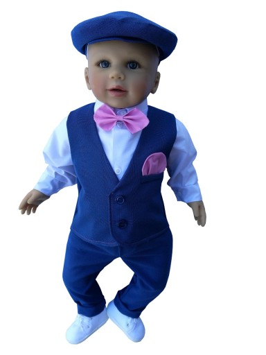 - БЛАКИТНИЙ ЖИЛЕТ - з костюмної тканини, застібається на два ґудзики, прикрашений рожевою кишенькою (хустинкою), обробленою спереду рожевою ниткою.