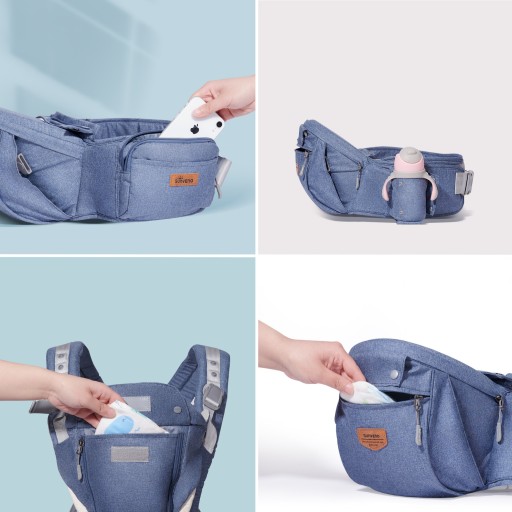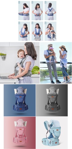 Використовуючи технологію силіконового гранулювання, наша переноска має сидіння для вашої дитини, яке не висувається вперед. Має подушку зГубка товщиною 1,5 смщо зменшує тиск на живіт.