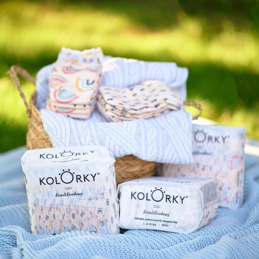 KOLORKY - це одноразові підгузки, створені з турботою про здоров'я дітей та навколишнє середовище.
