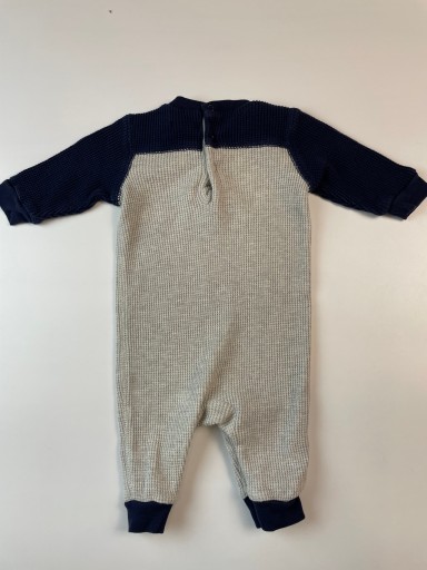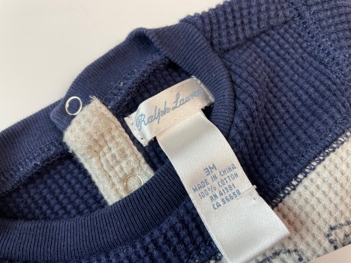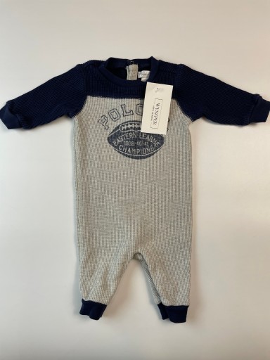 Комбінезон Chopice від Ralph Lauren темно-синього та сірого кольорів. Розмір на етикетці 3 місяці. Одяг виготовлений з щільного матеріалу з вафельною структурою. Ззаду застібається на кнопку. Знизу пандуси також застібаються на застібки, що дозволяє зручно надягати одяг. Одяг виготовлений дуже якісно, зі 100% бавовни, завдяки високій якості матеріалу він неодмінно буде дуже зручним для вашої дитини. чудова ідея для малюка в холодні дні.