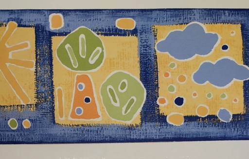 Візерунок: Сонце, ці комірці, квіти, дерева в цих квадратах. Спрощені візерунки.Це сині та темно-сині, процарапані.