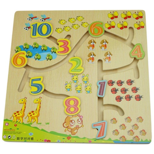 Дерев'яний кольоровий пазл-лабіринт із доріжкою руху ЦИФРИ - продукт, призначений для самих маленьких дітей. У цій головоломці на тему ЦИФРИ найменші діти навчаться поєднувати числа з відповідною кількістю тварин. Завдання дитини - переміщати цифри по наміченому маршруту і розставляти їх у потрібних місцях.